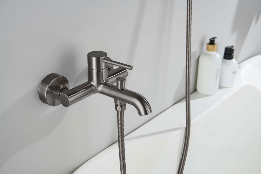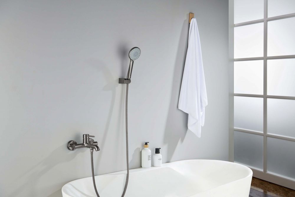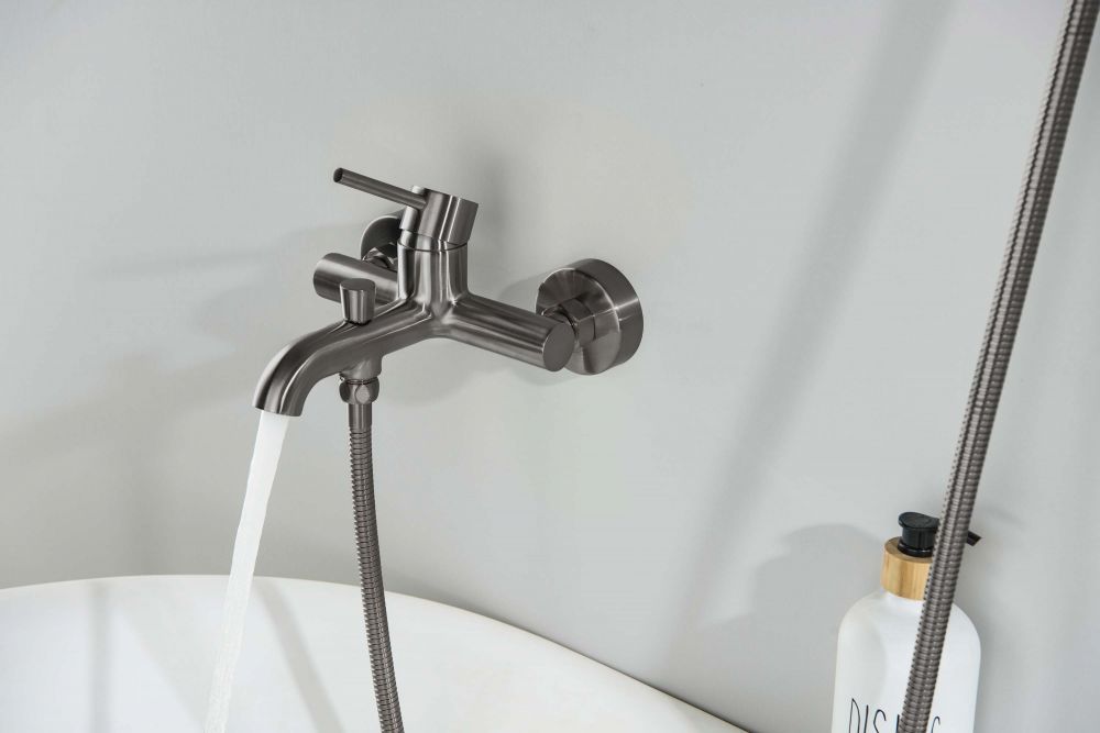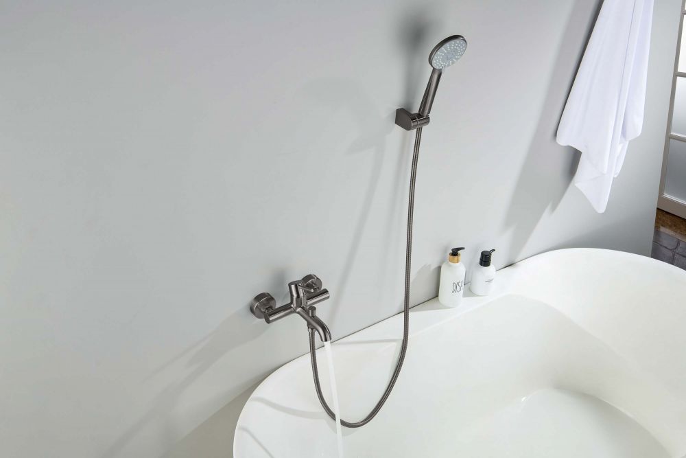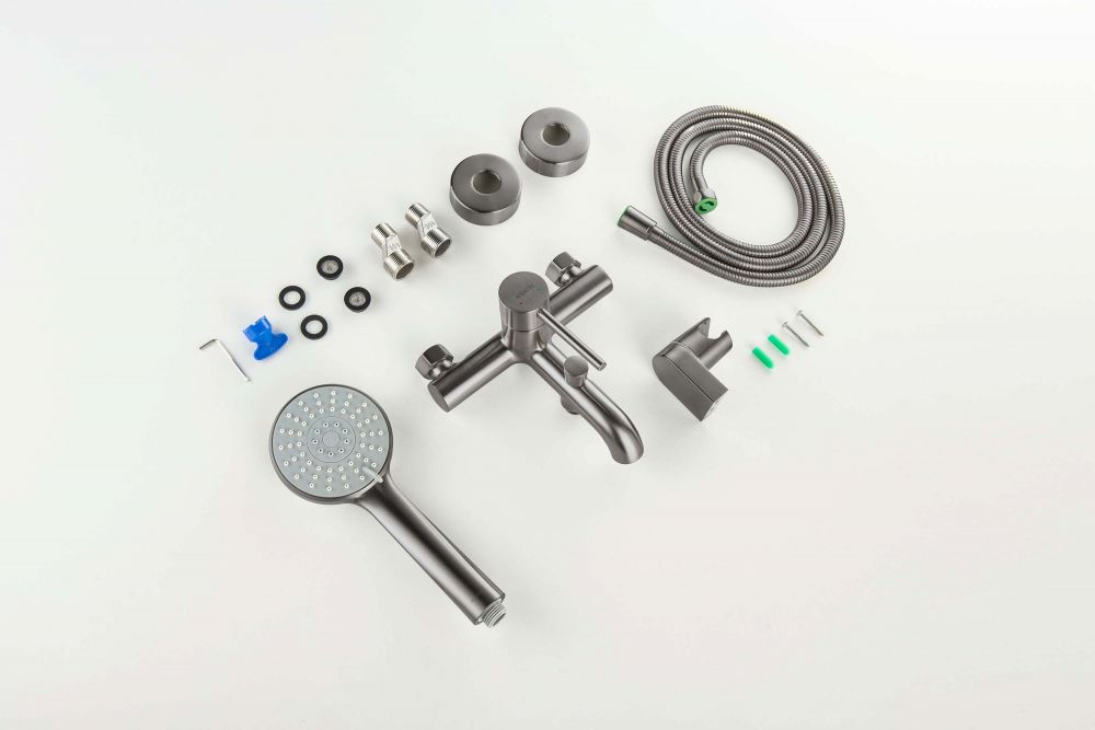 AQ1349BGM ЕВРОПА смеситель для ванны с душевым набором, оружейная сталь