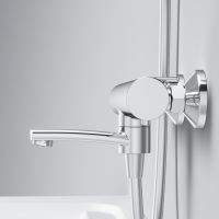 Новое прочтение культовой коллекции X-Joy. Еще больше инновационных решений для вашей ванной комнаты. Трендовые формы технологичные материалы и продуманные детали которые теперь доступны каждому. По самой привлекательной цене. Благодаря специально спроектированной эргономичной ручке вы можете управлять душевой системой даже с мыльными руками. Термостатический картридж с высокочувствительным термоэлементом и быстрой реакцией на изменения температуры или давления надежно защищает от ожога даже при внезапном отключении холодной воды. Смеситель X-Joy был создан для того чтобы радовать вас каждый день.