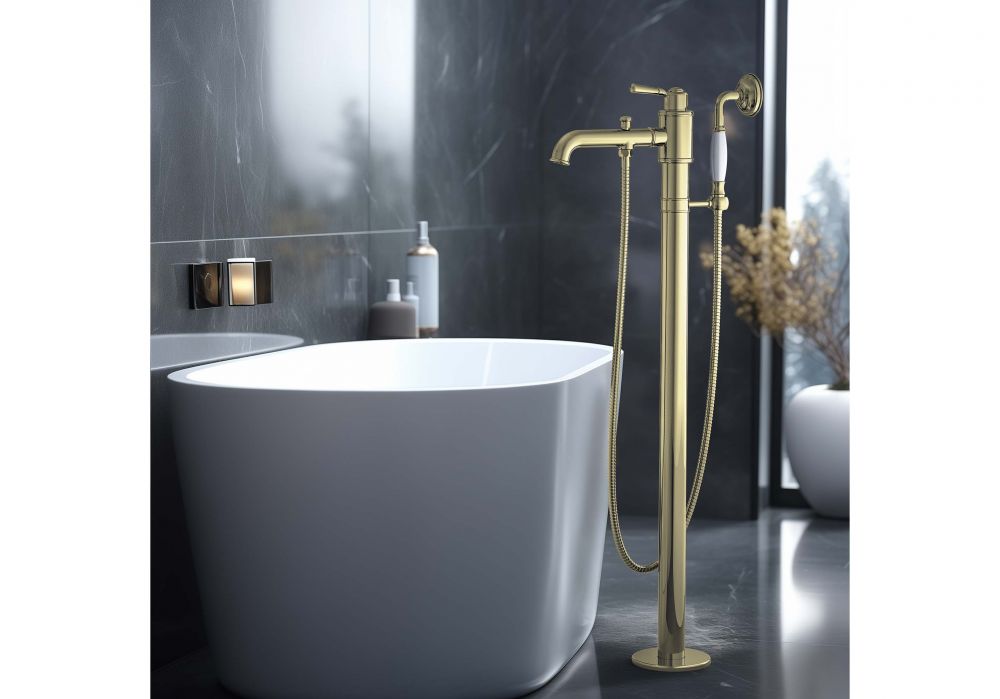 Смеситель для ванны напольный Aquatek КЛАССИК, золото полированное AQ1545PG