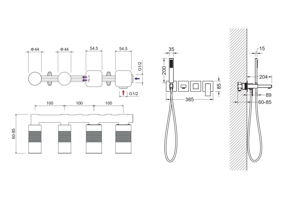 AQ1644CR ЛИБРА смеситель для ванны встроенный (внешняя и скрытая часть)