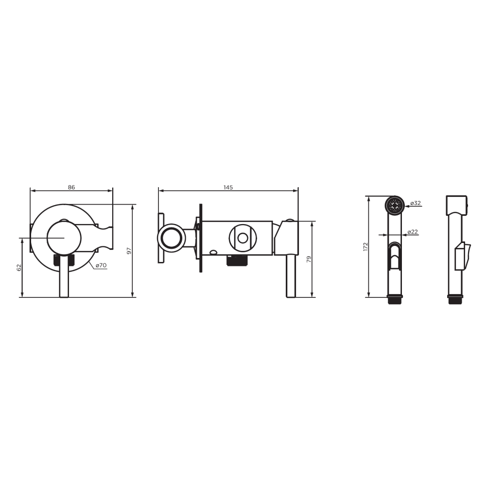 Смеситель, монтируемый в стену с гигиеническим душем Dorff Logic D3075000