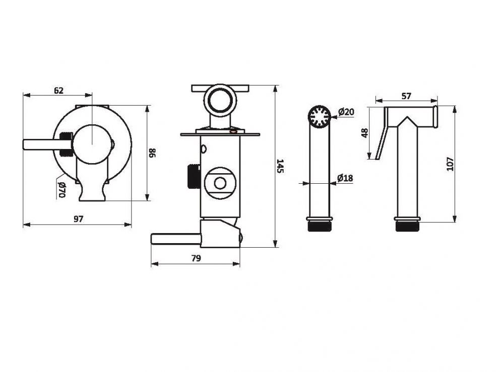 Смеситель, монтируемый в стену, с гигиеническим душем и держателем Damixa Option 217000000