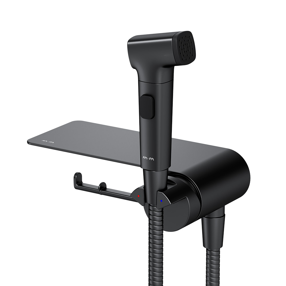 Смеситель, монтируемый в стену с гигиеническим душем и полкой AM.PM Func F0H8F922, черный