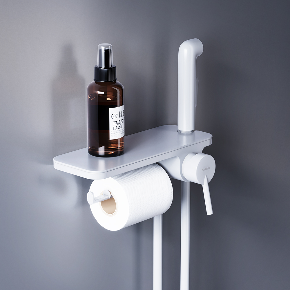 Смеситель, монтируемый в стену с гигиеническим душем и полкой Damixa Jupiter, Белый 773500200