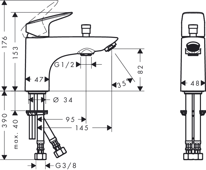 Вынос: 145 мм; Автоматический переключатель ванна/душ; Расход воды: 20л./мин; Ограничитель температуры воды; Керамический узел смешивания; Подходит для проточных водонагревателей. Экономия воды с технологией AirPower https://youtu.be/t6dPhiEyevs