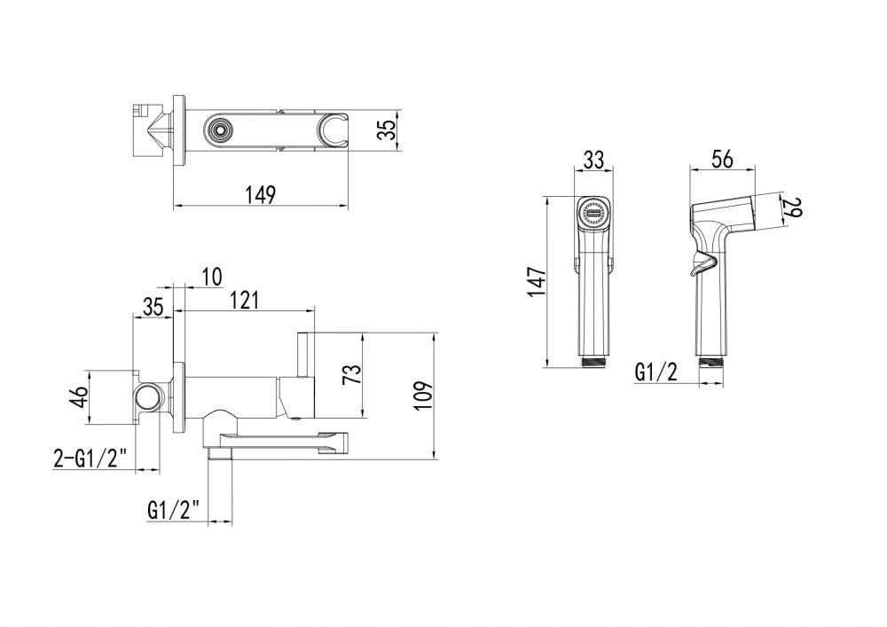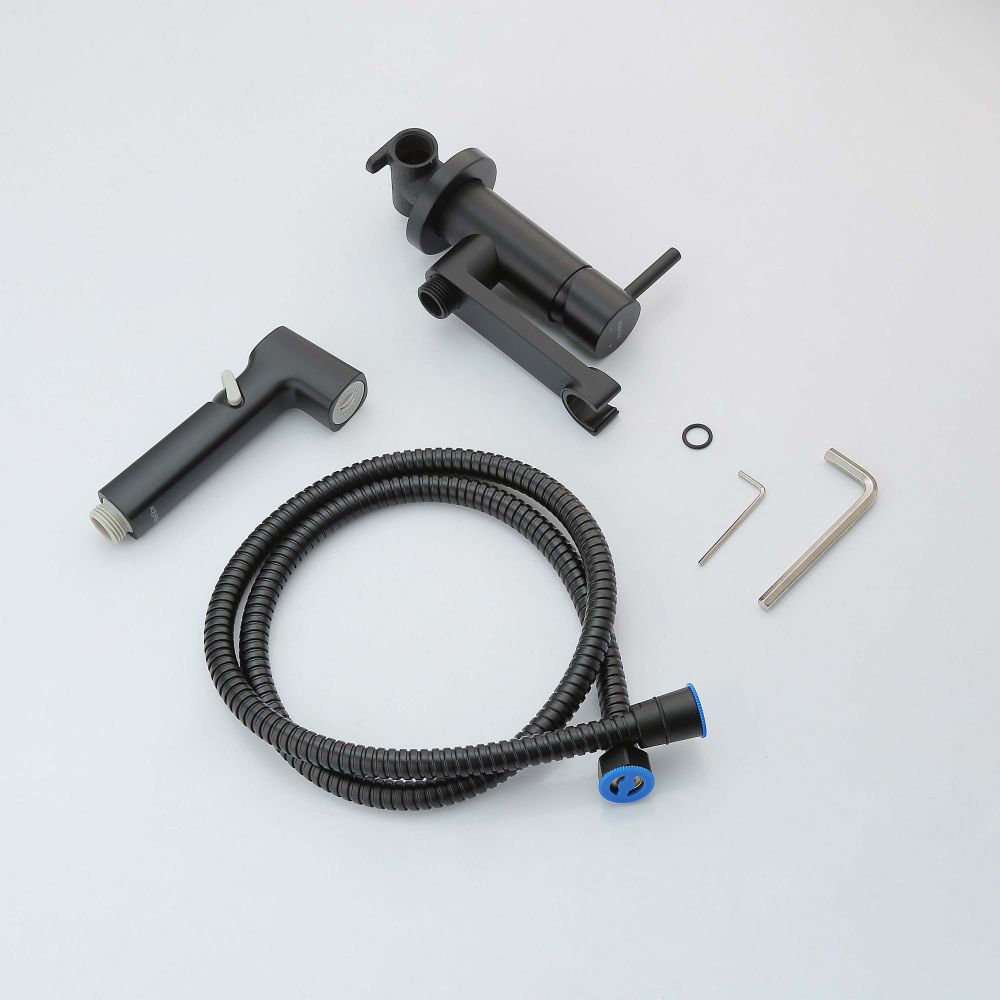 AQ1819MB НИКА комплект для гигиенического душа встроенный (смеситель + гигиеническая лейка + шланг), матовый черный