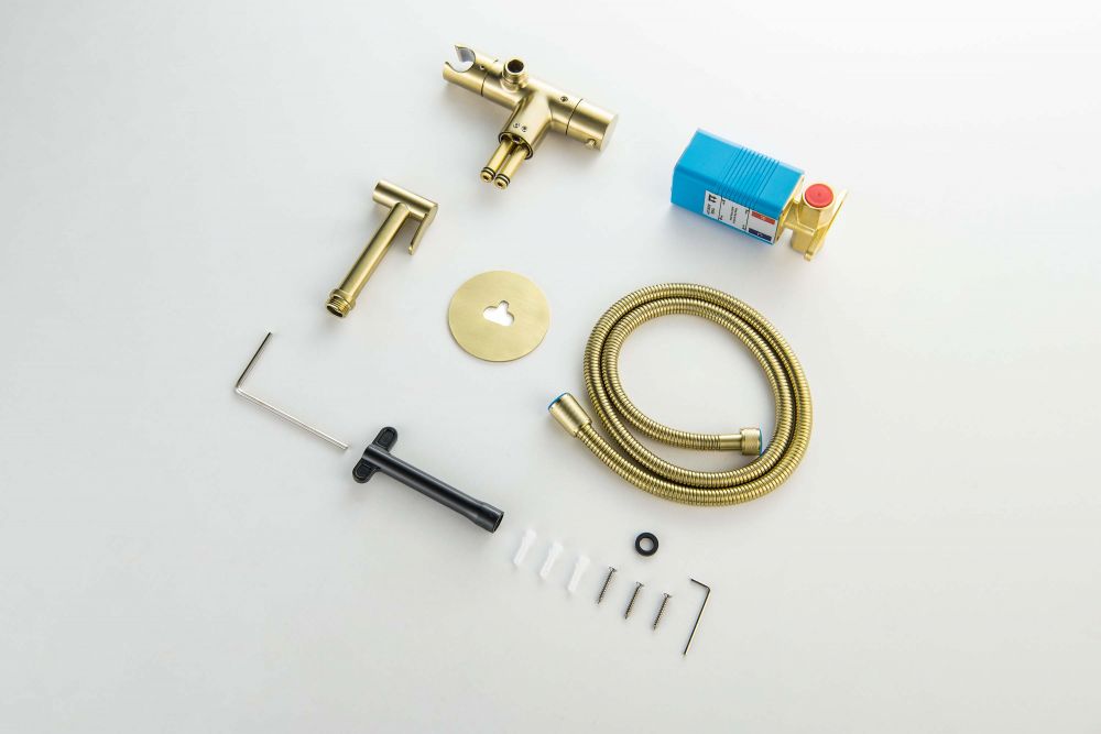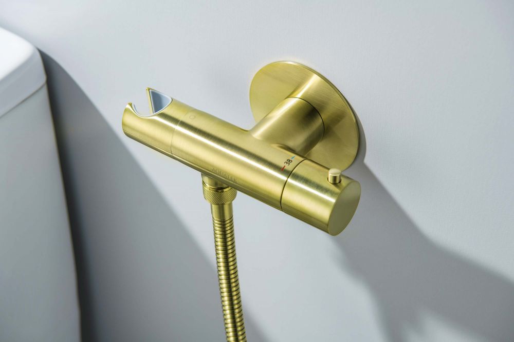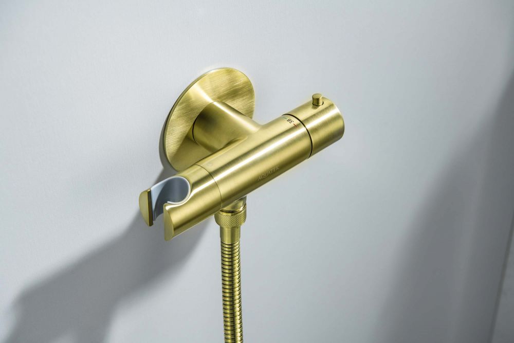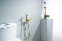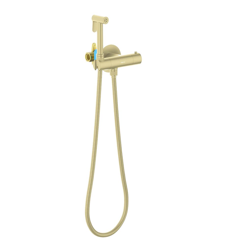 AQ1027BG ОБЕРОН комплект для гигиенического душа термостатический встроенный (смеситель + гигиеническая лейка + шланг), шлиф. золото