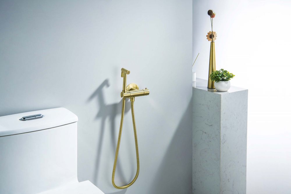 Смеситель с гигиеническим душем Aquatek Оберон, золото шлифованное AQ1027BG