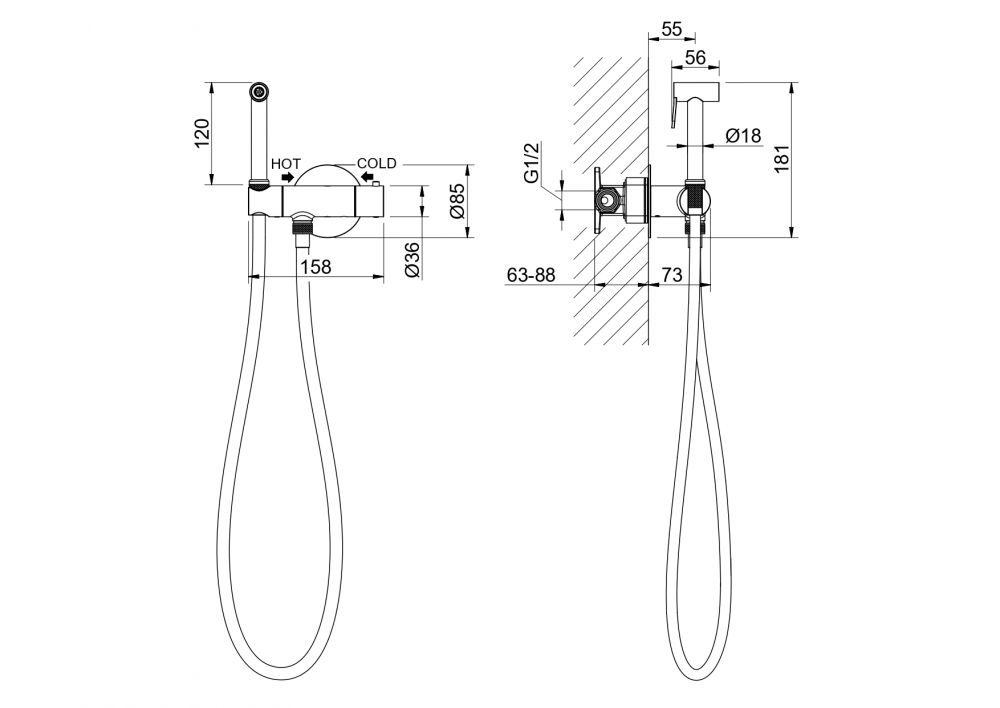 смеситель из латуни с установочной коробкой; термостатический картридж из латуни; ручка из латуни; декоративная накладка из нерж., размер φ80*80*2,5мм; гигиенический душ из латуни; шланг из нерж., длина 1,2м; упакован в коробку со вставкой из вспененного пвх