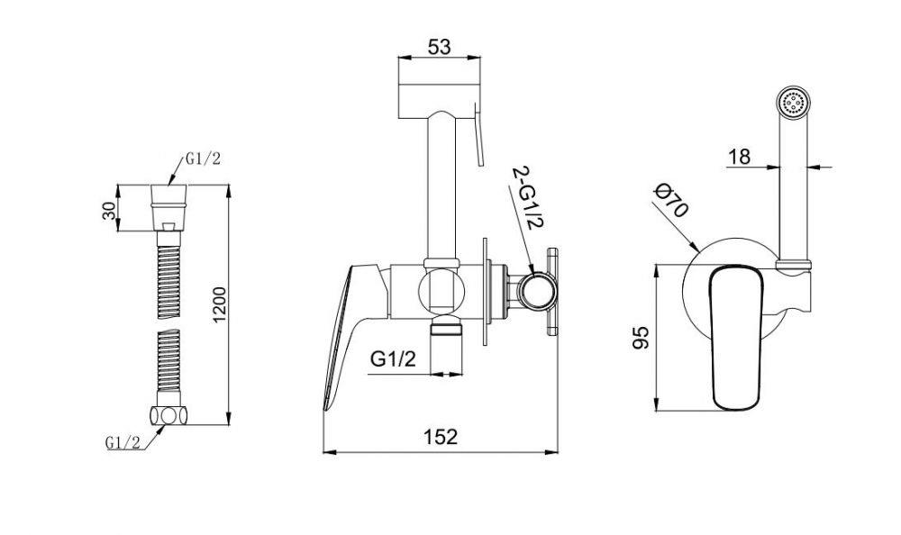 AQ1019BGM ВЕГА комплект для гигиенического душа встроенный (смеситель + гигиеническая лейка + шланг), оружейная сталь