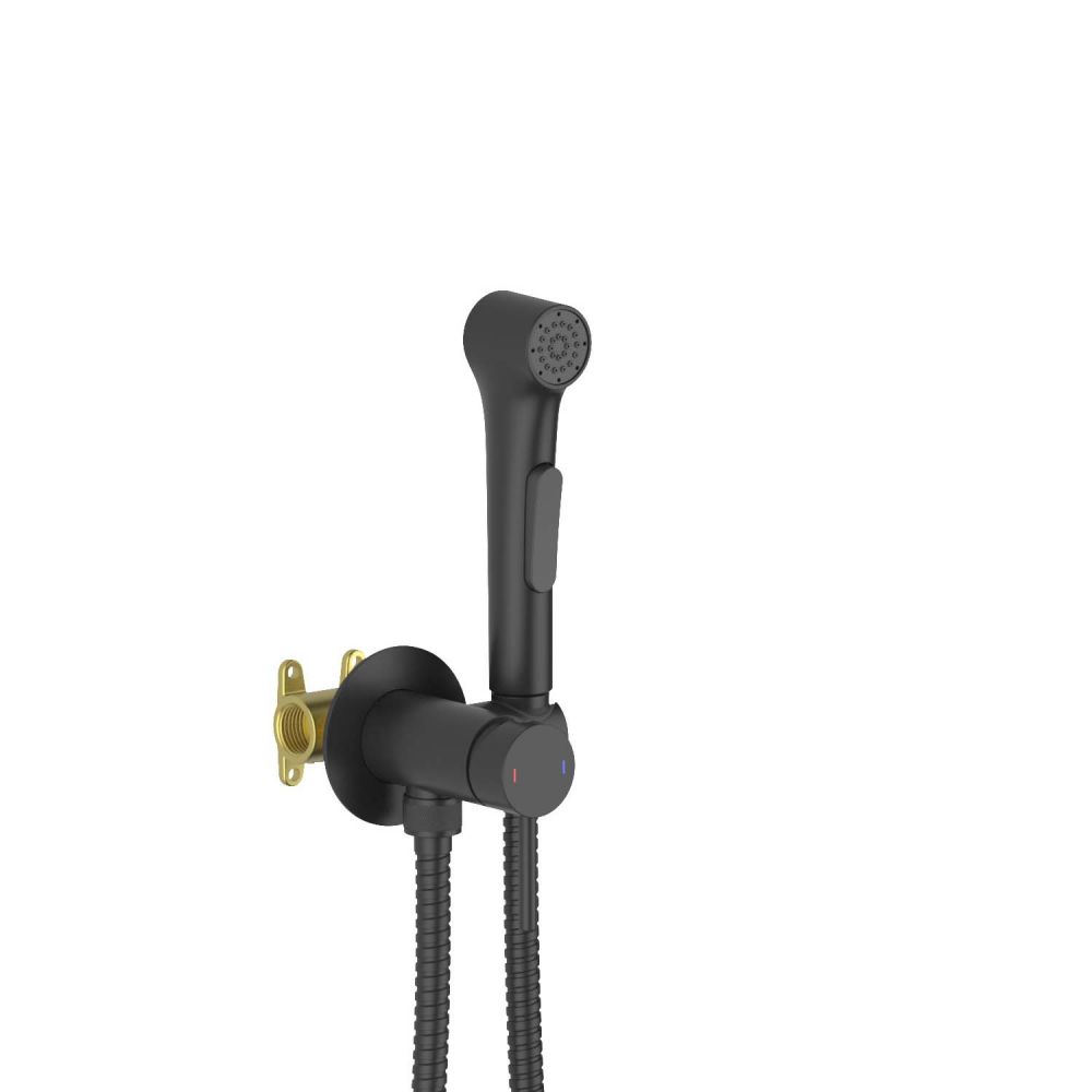 AQ1020MB ЕВРОПА комплект для гигиенического душа встроенный (смеситель + гигиеническая лейка + шланг), матовый черный