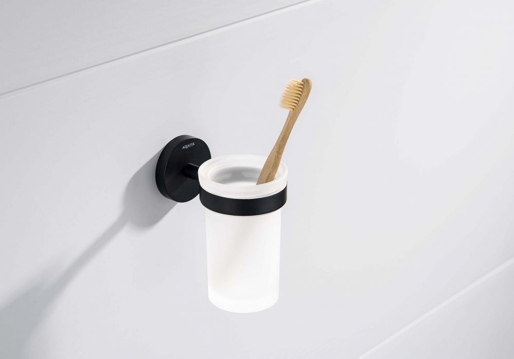 Стакан с держателем AQUATEK, матовый черный AQ4104MB ЕВРОПА