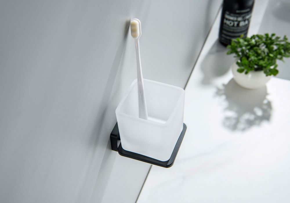 Стакан с держателем AQUATEK, матовый черный AQ4304MB ЛИБРА