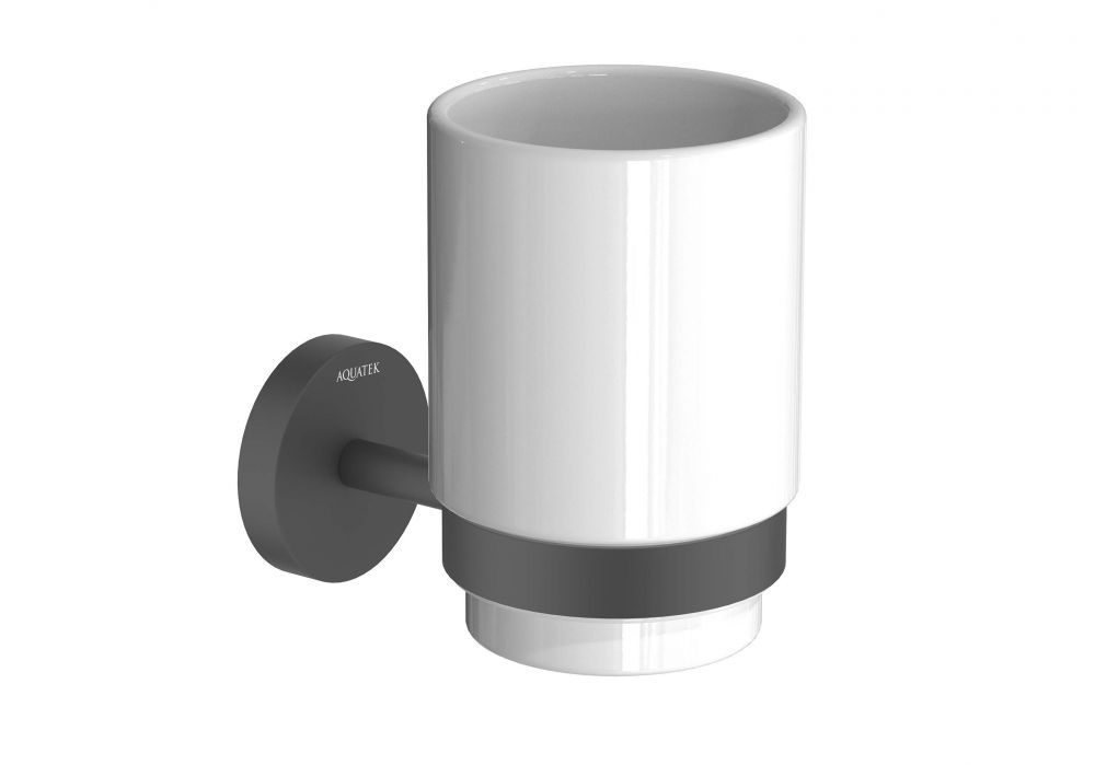 Стакан с держателем AQUATEK, матовый черный AQ4604MB БЕТТА
