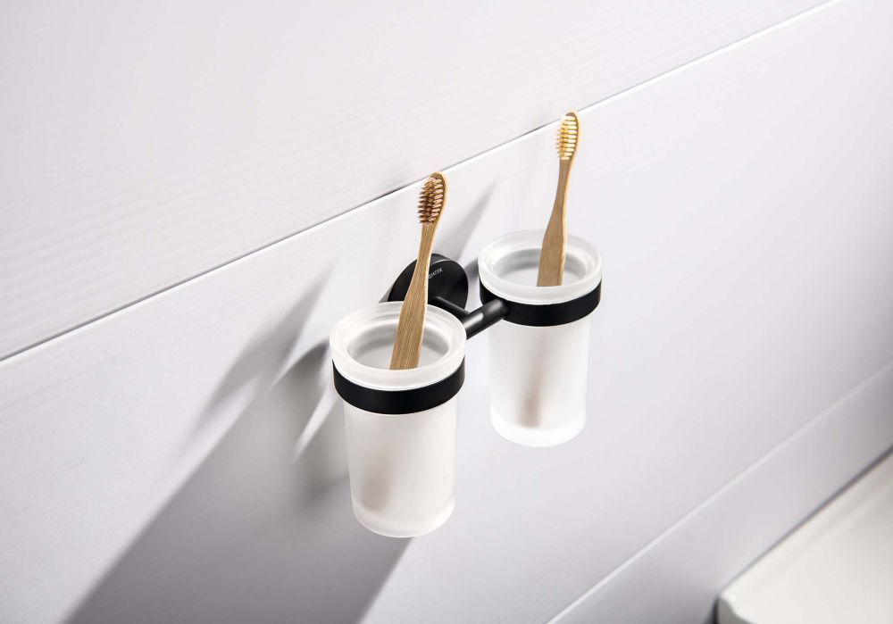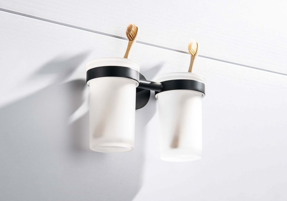 Стакан с держателем двойной AQUATEK, матовый черный AQ4117MB ЕВРОПА