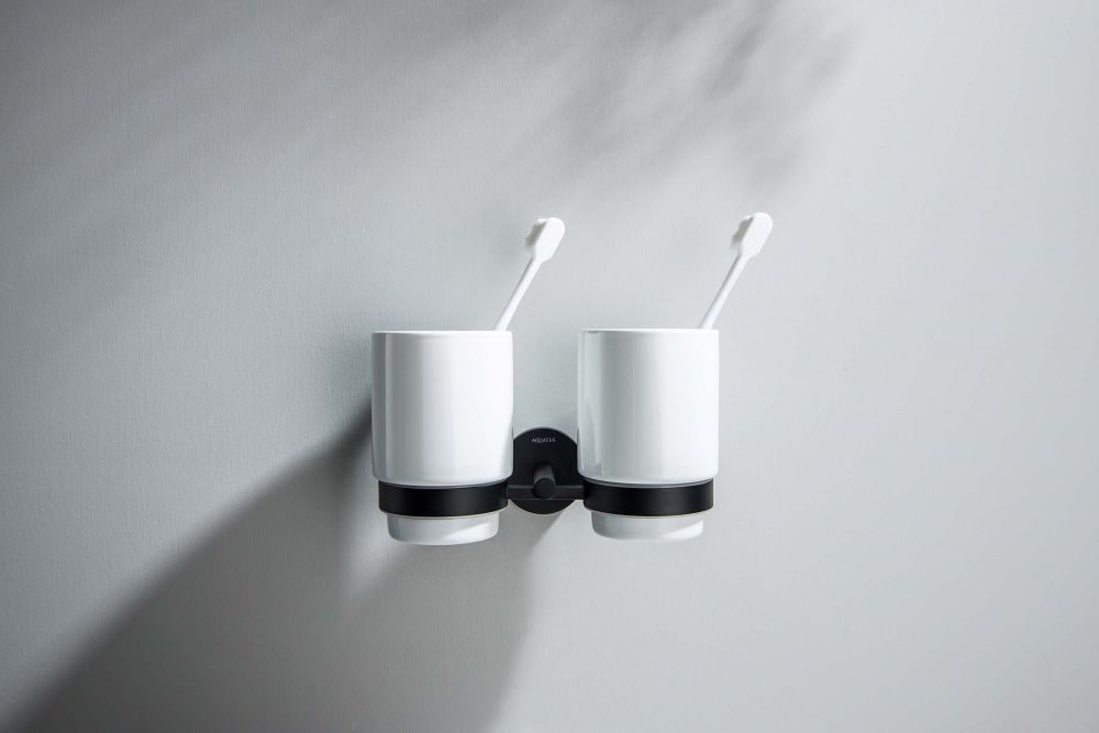 Стакан с держателем двойной AQUATEK, матовый черный AQ4617MB БЕТТА