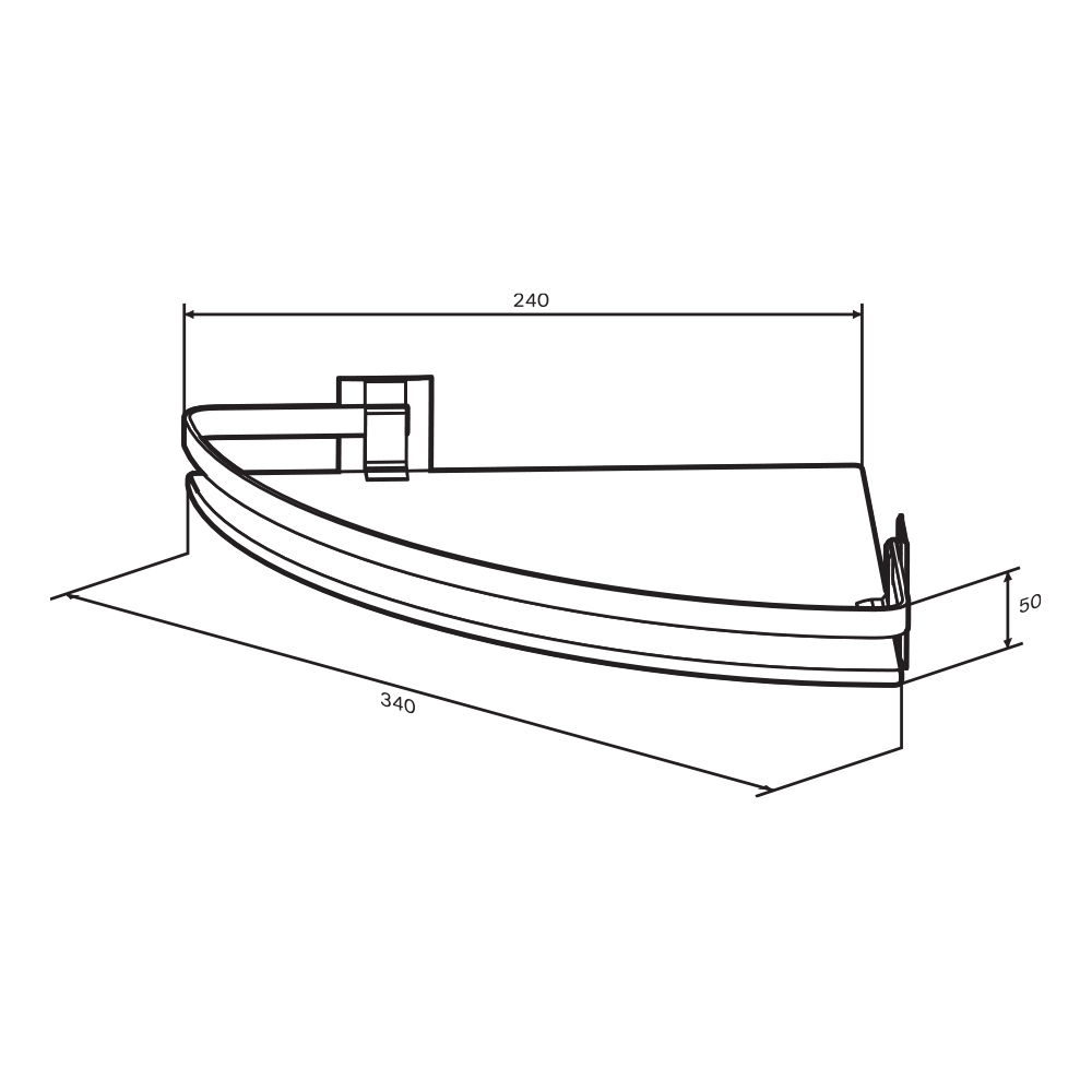 A7456100 Sense L Полка угловая стеклянная, алюминий
