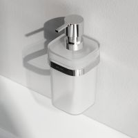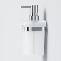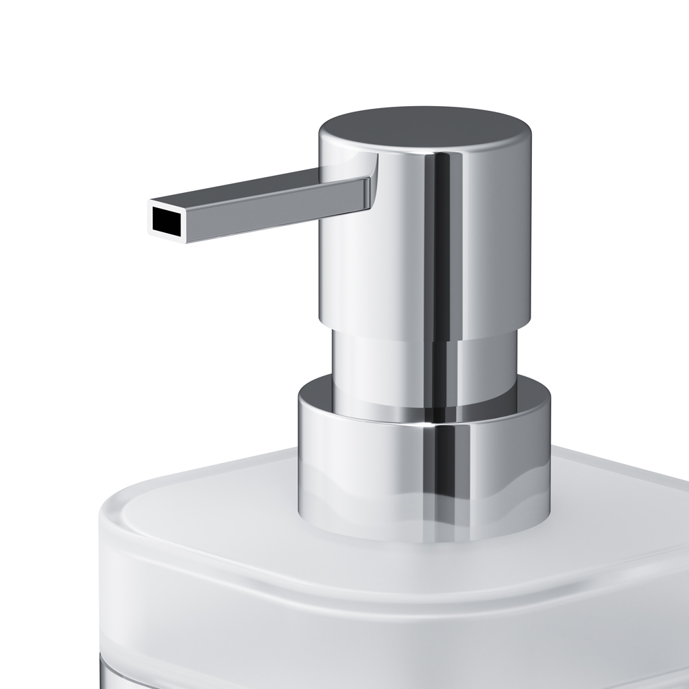 Коллекция аксессуаров Func сочетает в себе яркий дизайн безупречную эстетику и выводит функциональность каждого изделия на абсолютно новый уровень. Дизайн этой выдающейся коллекции принадлежит авторству всемирно известной студии Design3 Германия. Диспенсер для жидкого мыла из коллекции Func – стильная замена фабричным флаконам с жидким мылом. Он станет ярким завершающим штрихом в любом интерьере ванной комнаты – от просто и минималистичного до классического. Продукт выполнен из сплава металлов с устойчивым к повреждениям хромированным покрытием и матового стекла белого цвета. Все аксессуары Func отличает сверхпрочная конструкция и бескомпромиссное качество. В комплекте вы найдете все необходимые для установки крепления.