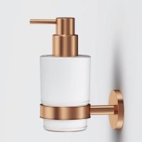 Самая провокационная коллекция сантехники – X-Joy не была полностью наполненной без невероятных аксессуаров для ванной комнаты. Дизайн аксессуаров X-Joy принадлежит авторству собственной дизайн-студии бренда AM.PM из Германии. В основе дизайна аксессуаров – контраст между строгими квадратными и плавными округлыми формами. Это небанальное сочетание форм делает облик продуктов универсальным что позволяет им вписаться в любой интерьер. Диспенсер для жидкого мыла X-Joy – незаменимый аксессуар для вашей ванной. Подвесная установка делает этот продукт невероятно удобным для использования. Продукт выполнен из сплава металлов высочайшего качества с матовым покрытием розового золота устойчивым к механическим повреждениям и матового стекла. Настоящее произведение ювелирного искусства в вашей ванной комнате: нежный оттенок розового золота получается методом вакуумного напыления смеси 24-каратного золота серебра и меди в процессе которого микрочастицы сплава образуют стойкое соединений с металлической основой. Даже через 10 лет аксессуары X-Joy будут выглядеть как новые. ""