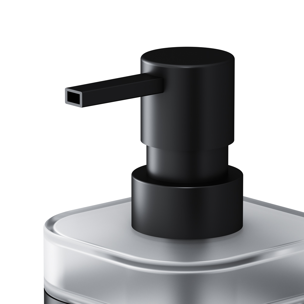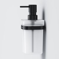 Коллекция аксессуаров Func сочетает в себе яркий дизайн безупречную эстетику и выводит функциональность каждого изделия на абсолютно новый уровень. Дизайн этой выдающейся коллекции принадлежит авторству всемирно известной студии Design3 Германия. Диспенсер для жидкого мыла из коллекции Func – стильная замена фабричным флаконам с жидким мылом. Он станет ярким завершающим штрихом в любом интерьере ванной комнаты – от просто и минималистичного до классического. Продукт выполнен из сплава металлов с устойчивым к повреждениям черным матовым покрытием и матового стекла. Все аксессуары Func отличает сверхпрочная конструкция и бескомпромиссное качество. В комплекте вы найдете все необходимые для установки крепления.
