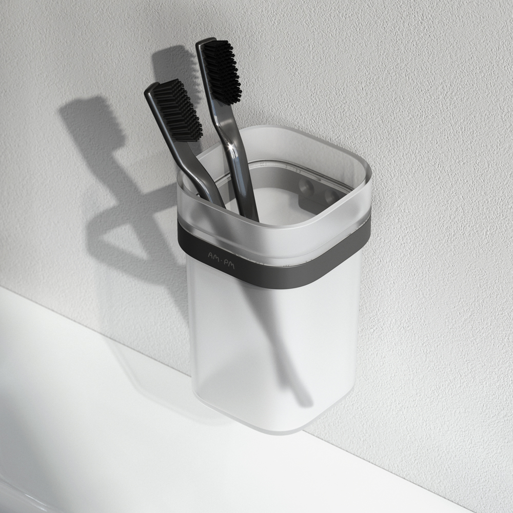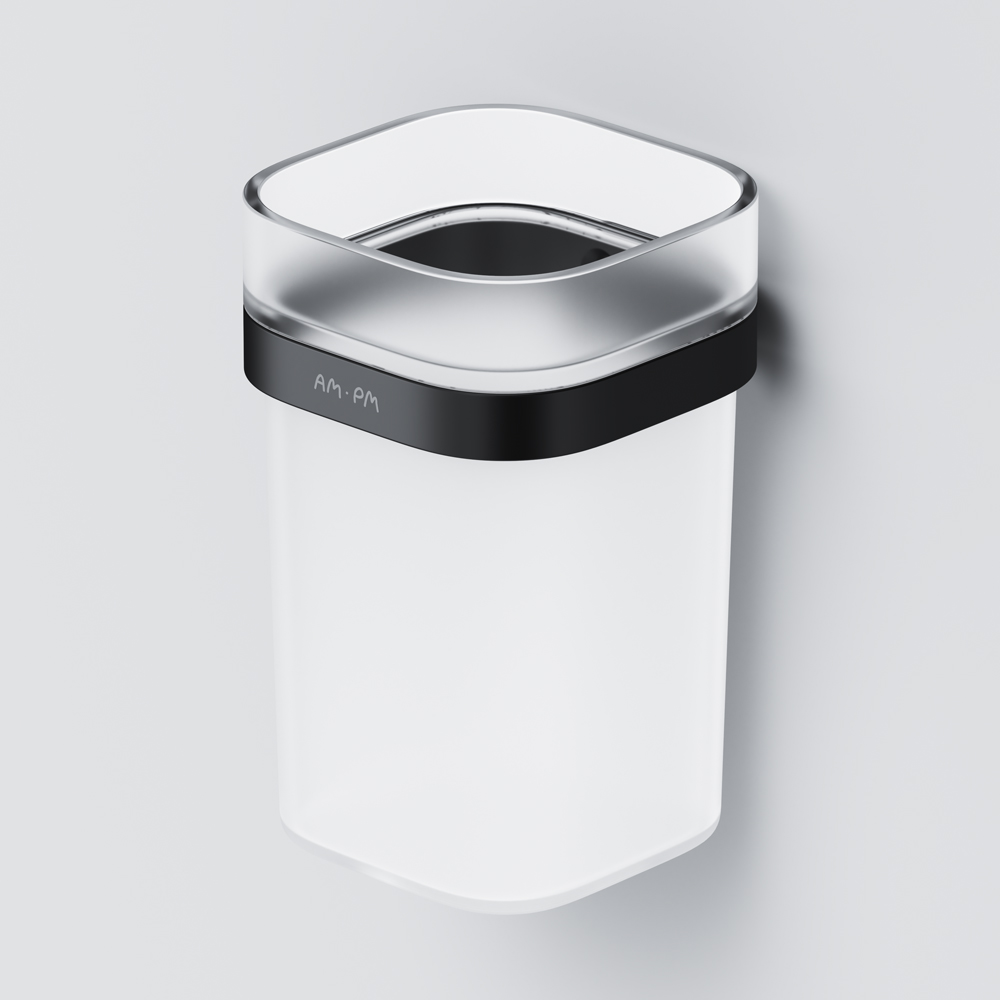 Стеклянный стакан с настенным держателем, черный, AM.PM Func A8F34322