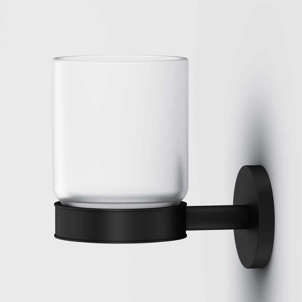 Стеклянный стакан с настенным держателем черный, AM.PM X-Joy A85A34322