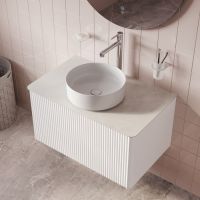 Столешница для тумбы Aiger шириной 80 см из тонкого керамогранита стильного универсального цвета «светло-серый бетон» – красивое решение для ванной комнаты в современном и неоклассическом стиле. • Столешница повторяет радиус скругления угла тумбы и идеально совпадает с ее формой – это создает гармоничный завершенный вид. • Края филигранно запилены под 45 градусов и отполированы до глянцевого блеска – выглядят эстетично и при этом безопасны. • Матовое покрытие создает приятную на ощупь фактуру и надолго сохранит привлекательный внешний вид. • Абсолютная влагостойкость и высочайшая износостойкость – прослужит долго в условиях повышенной влажности. • Отверстия для умывальника и смесителя расположены по центру столешницы. Гарантия на мебельные столешницы IDDIS® – 3 года. (с) Авторский текст, октябрь 2024 г.