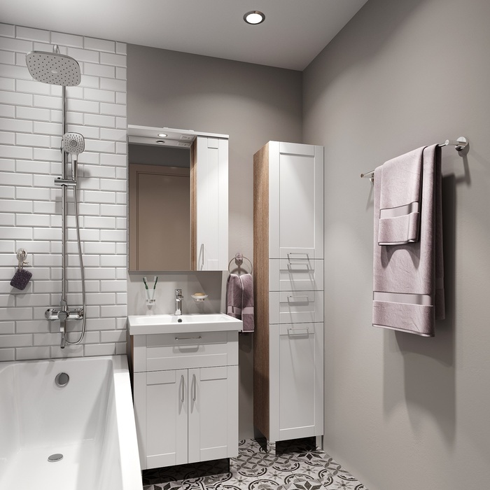 Тумба напольная, 60 см, белая/под дерево, New Sena, IDDIS, NSE60W2i95