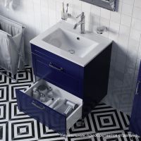 Компактная напольная тумба Oxford в красивом синем оттенке – модное сочетание классического стиля и стиля ретро. Она органично впишется в интерьер благодаря элегантному фрезерованному фасаду и узнаваемому дизайну. Умывальник покупается отдельно, подходит умывальник IDDIS® (арт. 0136000i28). • Два просторных выдвижных ящика закрываются плавно и бесшумно благодаря высококачественным скрытым направляющим с доводчиками немецкого производства. • Хромированные ножки и ручки дополняют цвет фасада и сочетаются с дизайном одноименных смесителей IDDIS® и смесителей в стиле ретро. Несложно подобрать все необходимое для создания гармоничного интерьера. • Поверхность фасадов бархатистая, приятная на ощупь. Это ощущение создает полуматовая полимерная эмаль с эффектом soft touch. • Фурнитура рассчитана на 30 000 открываний – это более 10 лет исправной работы. Гарантия на мебель IDDIS® – 3 года. (с) Авторский текст, август 2023 г.