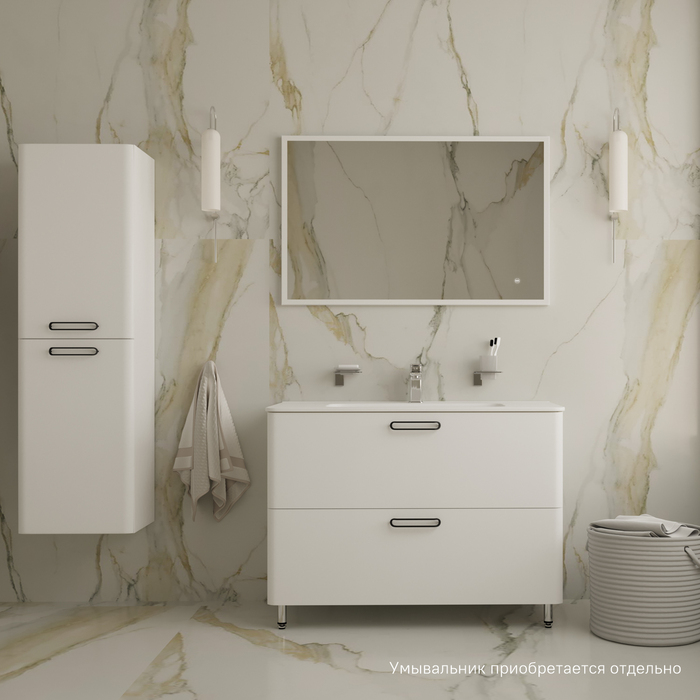 Вместительная тумба с плоским фарфоровым умывальником (приобретается отдельно) из популярной коллекции мебели Brick станет настоящим украшением для ванных комнат различной планировки в современном стиле. Сочетание белого глянца и сатиновых ручек делает коллекцию особенной. Напольная тумба Brick – невероятно удобное решение для тех, кому нужна модель с увеличенной вместительностью для хранения тяжелых предметов: больших пакетов со стиральным порошком и емкостей с бытовой химией. Рекомендуется использовать только оригинальную модель умывальника IDDIS® (арт. 0101000i28). • Два выдвижных ящика с механизмом плавного доведения и перекатной организатор в нижнем ящике тумбы – для удобного хранения косметики и полезных мелочей. • Фурнитура мебели IDDIS® рассчитана на 30 тысяч открываний, что составляет более 10 лет исправной работы. • Гарантия на мебель IDDIS® – 3 года. (с) Авторский текст, октябрь 2021 г.