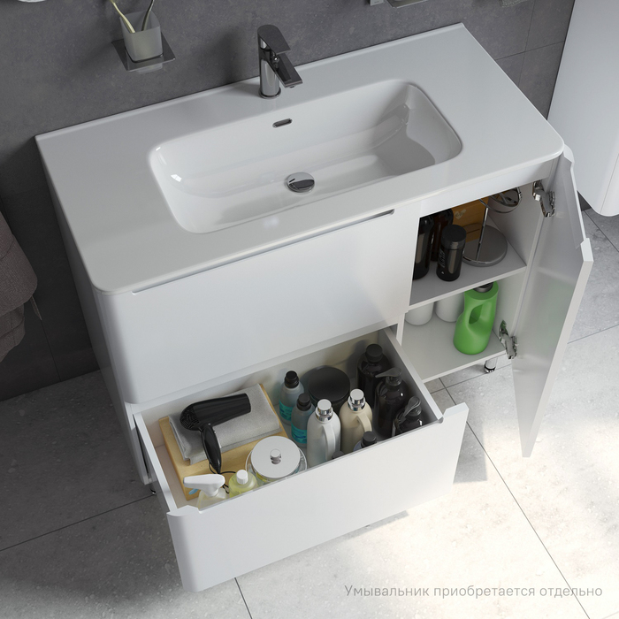 Вместительная тумба Edifice предлагает новое решение для организации пространства ванной комнаты, сохраняя любимый узнаваемый облик коллекции. Мебель коллекции Edifice представляет собой воплощение современного минимализма: мягкие линии корпуса в сочетании с удобными интегрированными ручками выглядят свежо и актуально. Хромированные ножки тумбы не только гармонично дополняют белый полуматовый фасад, но и поддерживают дизайн смесителей IDDIS® из одноименной коллекции. Напольная тумба Edifice – невероятно удобное решение для тех, кому нужна модель с увеличенной вместительностью для хранения тяжелых предметов: больших пакетов со стиральным порошком и емкостей с бытовой химией. Рекомендуется использовать только оригинальную модель умывальника IDDIS® (арт. 0101000i28). Умывальник приобретается отдельно. • Два выдвижных ящика с механизмом плавного доведения и перекатной организатор в нижнем ящике – для удобного хранения косметики и полезных мелочей. • Фурнитура мебели IDDIS® рассчитана на 30 тысяч открываний, что составляет более 10 лет исправной работы. • Гарантия на мебель IDDIS® – 3 года. (с) Авторский текст, октябрь 2021 г.