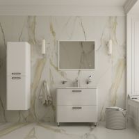 Тумба с плоским фарфоровым умывальником (приобретается отдельно) из популярной коллекции мебели Brick станет настоящим украшением для ванных комнат различной планировки в современном стиле. Сочетание белого глянца и сатиновых ручек делает коллекцию особенной. Напольная тумба Brick – невероятно удобное решение для тех, кому нужна модель с увеличенной вместительностью для хранения тяжелых предметов: больших пакетов со стиральным порошком и емкостей с бытовой химией. Рекомендуется использовать только оригинальную модель умывальника IDDIS® (арт. 0108000i28). • Два выдвижных ящика увеличенной высоты с механизмом плавного доведения и перекатной организатор в нижнем ящике тумбы – для удобного хранения косметики и полезных мелочей. • Фурнитура мебели IDDIS® рассчитана на 30 тысяч открываний, что составляет более 10 лет исправной работы. • Гарантия на мебель IDDIS® – 3 года. (с) Авторский текст, октябрь 2021 г.