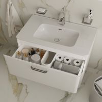 Тумба с плоским фарфоровым умывальником из популярной коллекции мебели Brick станет настоящим украшением для ванных комнат различной планировки в современном стиле. Сочетание белого глянца и сатиновых ручек делает коллекцию особенной. Напольная тумба Brick – невероятно удобное решение для тех, кому нужна модель с увеличенной вместительностью для хранения тяжелых предметов: больших пакетов со стиральным порошком и емкостей с бытовой химией. • Входящий в комплект умывальник (арт. 0108000i28) из качественного фарфора отличается высокой прочностью и простотой в уходе – он не задерживает загрязнения и неприятные запахи, надолго сохраняя первозданную белизну. • Два выдвижных ящика с механизмом плавного доведения и перекатной организатор в нижнем ящике тумбы – для удобного хранения косметики и полезных мелочей. • Фурнитура мебели IDDIS® рассчитана на 30 тысяч открываний, что составляет более 10 лет исправной работы. • Гарантия на мебель IDDIS® – 3 года. (с) Авторский текст, октябрь 2021 г.
