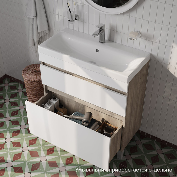 Тумба напольная с ящиками, 80 см, белая/под дерево, Zodiac, IDDIS, ZOD8ABFi95