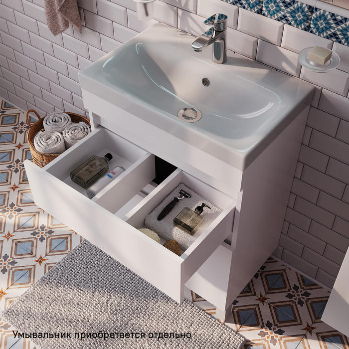 Напольная тумба для ванной комнаты Zodiac с ящиками – высокий уровень удобства и практичности в сочетании с лаконичным универсальным дизайном. Для комплектации тумбы рекомендуется использовать только оригинальный умывальник IDDIS® (арт. 3506000i28). • Фасад и боковины изготовлены из ЛДСП, покрыты несколькими слоями белоснежной эмали. Такое качественное исполнение обеспечит долгий срок службы мебели во влажном помещении ванной (при соблюдении рекомендаций по уходу). • Два вместительных выдвижных ящика с механизмом плавного доведения закрываются плавно и бесшумно. Интегрированные ручки. Фурнитура рассчитана на 30 000 открываний, что составляет более 10 лет исправной работы. • В комплекте белые пластиковые ножки высотой 100 мм и сифон, за счет чего тумба полностью готова к установке. Гарантия на мебель для ванной IDDIS® – 3 года. (с) Авторский текст, декабрь 2022 г.