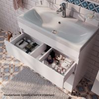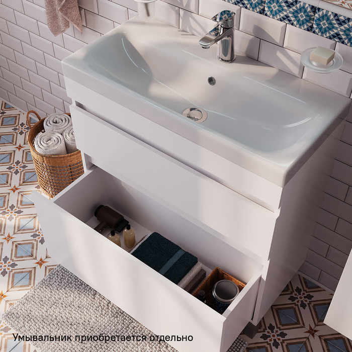Напольная тумба для ванной комнаты Zodiac с ящиками – высокий уровень удобства и практичности в сочетании с лаконичным универсальным дизайном. Для комплектации тумбы рекомендуется использовать только оригинальный умывальник IDDIS® (арт. 3508000i28). • Фасад и боковины изготовлены из ЛДСП, покрыты несколькими слоями белоснежной эмали. Такое качественное исполнение обеспечит долгий срок службы мебели во влажном помещении ванной (при соблюдении рекомендаций по уходу). • Два вместительных выдвижных ящика с механизмом плавного доведения закрываются плавно и бесшумно. Интегрированные ручки. Фурнитура рассчитана на 30 000 открываний, что составляет более 10 лет исправной работы. • В комплекте белые пластиковые ножки высотой 100 мм и сифон, за счет чего тумба полностью готова к установке. Гарантия на мебель для ванной IDDIS® – 3 года. (с) Авторский текст, декабрь 2022 г.