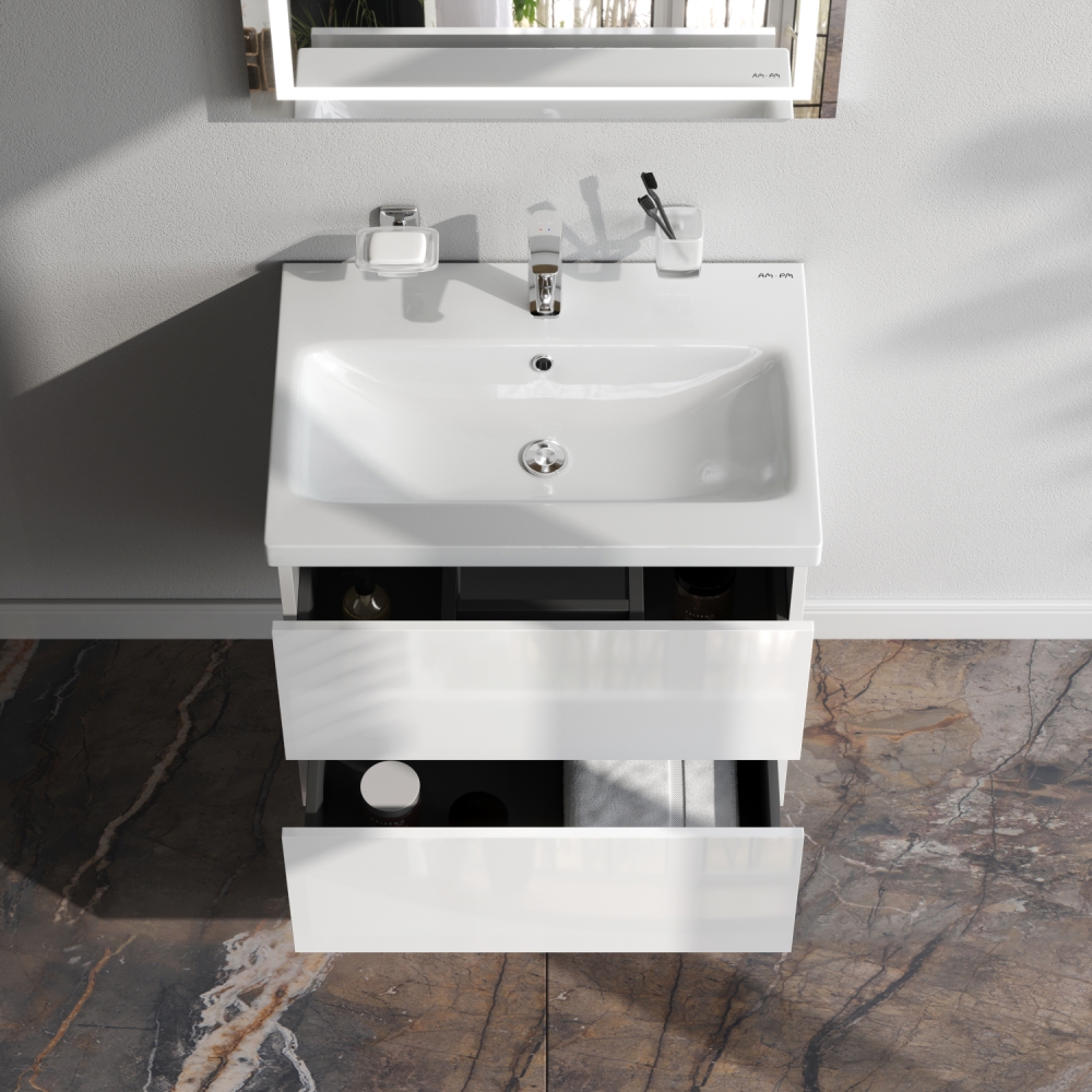 Тумба под раковину AM.PM Gem 60 подвесная два ящика, белый глянец M90FHX06022WG