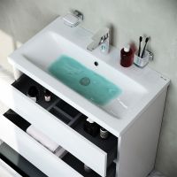 • Массивная керамическая раковина толщиной 5 см с проекцией всего 42 см для самых компактных ванных комнат