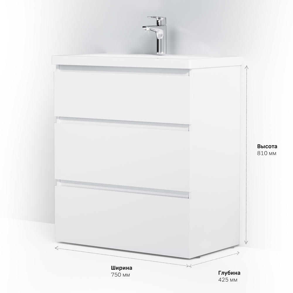 Тумба под раковину AM.PM Gem S 75 напольная, белый глянец M91FSX0752WG