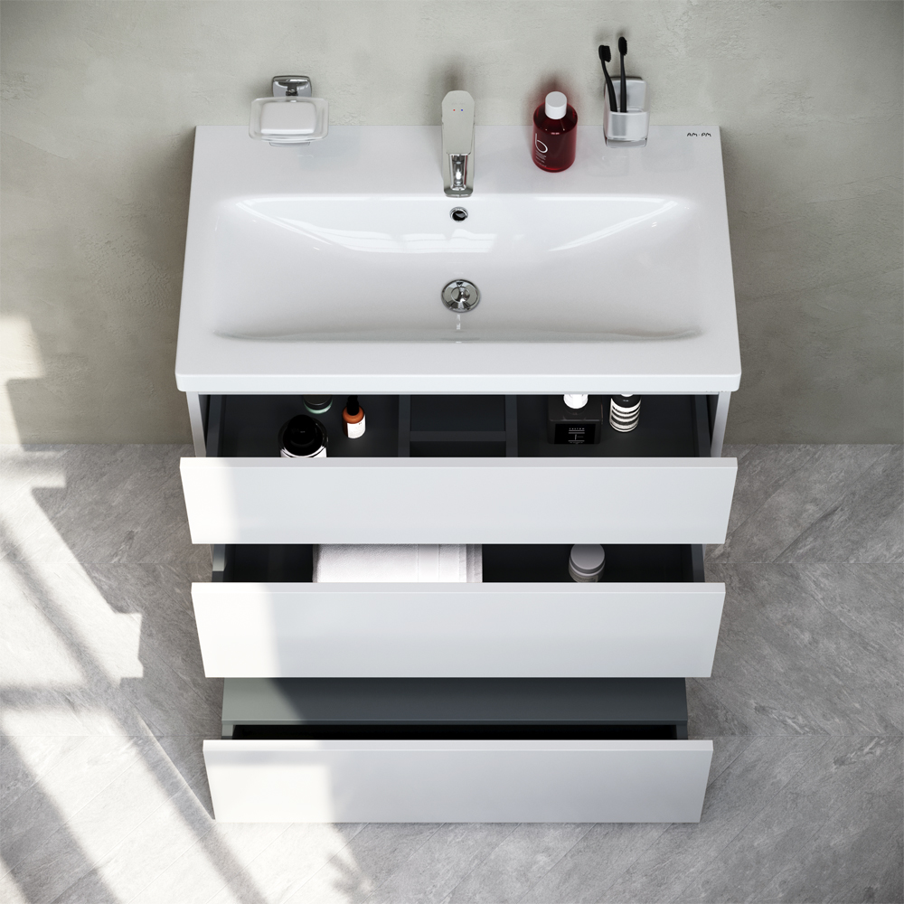 • Повышенная влагостойкость мебели: окрашенные в 7 слоев поверхности мебели в цвете белый глянец