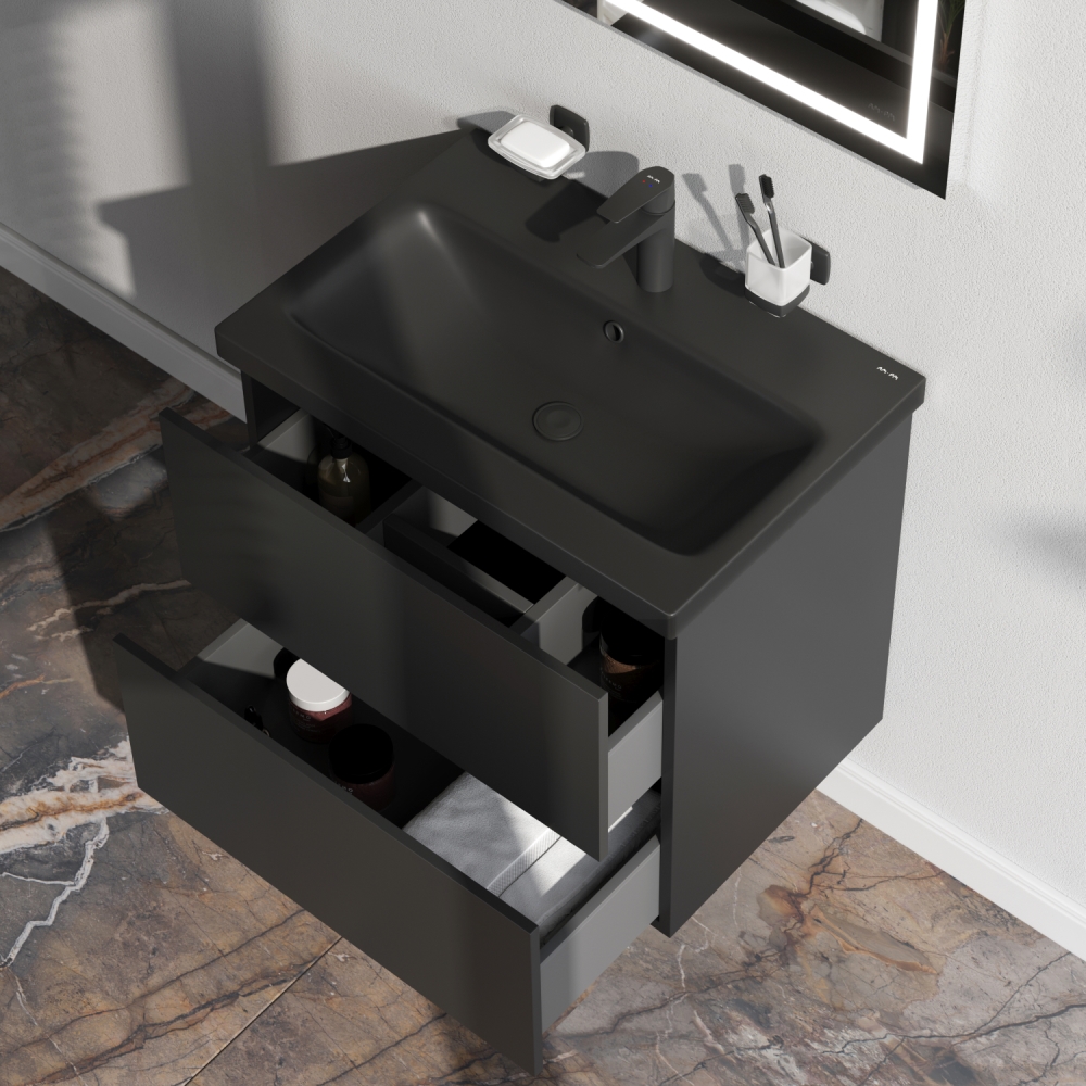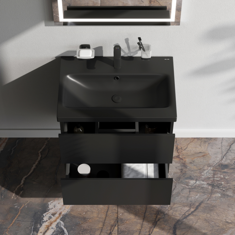 Тумба под раковину AM.PM Gem, подвесная, 60 см, черный матовый M90FHX06022BM