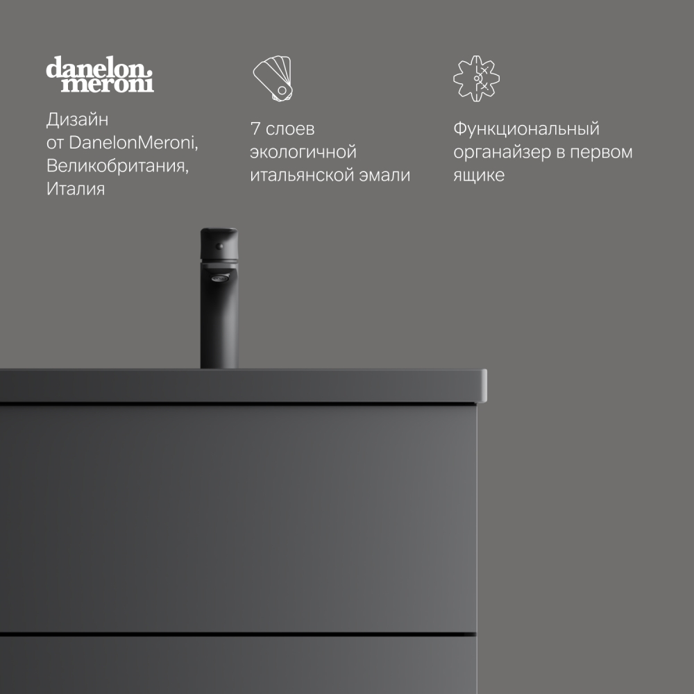 Хотите выделиться при ограниченном бюджете? Трендовый дизайн мебели для ванной комнаты Gem не уступает комплектам по гораздо более высокой цене. Теперь цветовая палитра коллекции Gem дополнена стильным матовым черным цветом! Впервые в доступном сегменте: фурнитура push-to-open последнего поколения. Экологически чистые и удивительно долговечные полиакриловые эмали – специальная технология покраски в 7 слоев превосходит технологию нанесения автоэмали у ведущих немецких марок и обеспечивает насыщенный цвет в течение всего срока службы (от 10 лет). ""