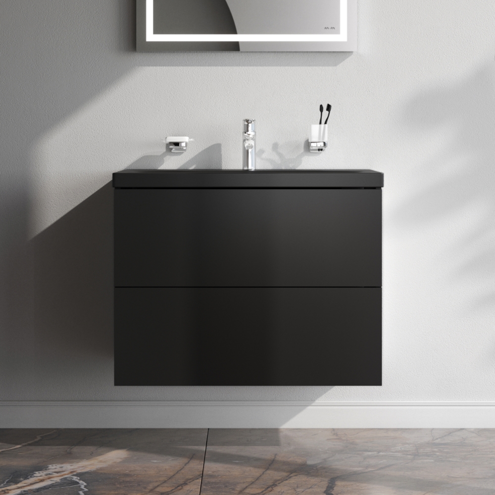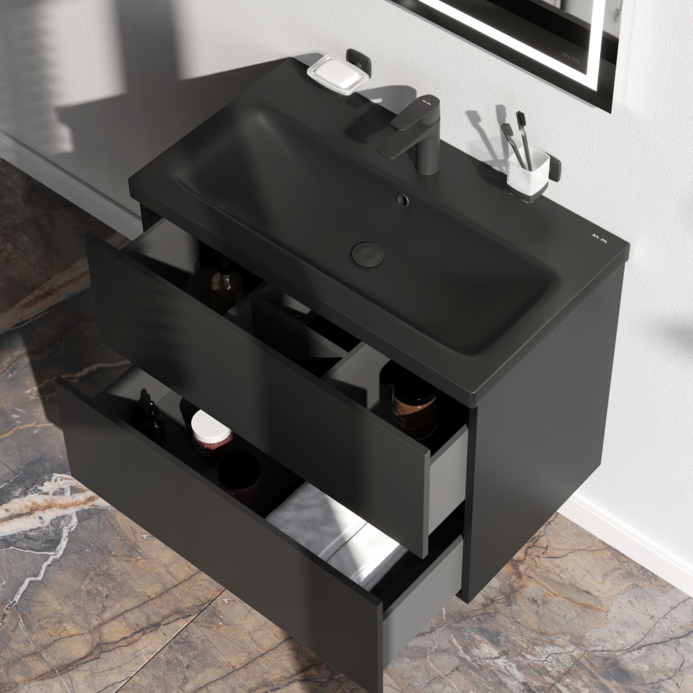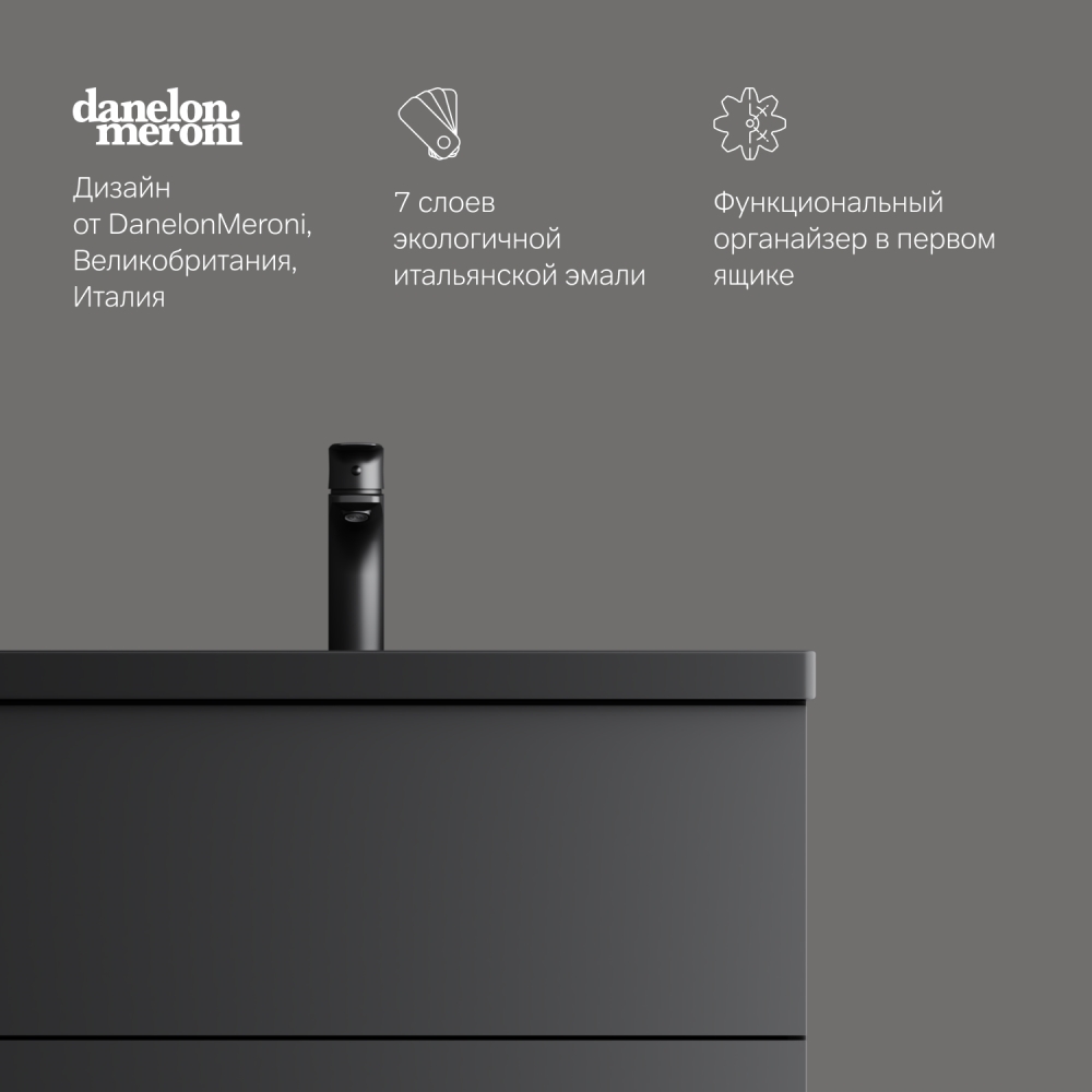 Хотите выделиться при ограниченном бюджете? Трендовый дизайн мебели для ванной комнаты Gem не уступает комплектам по гораздо более высокой цене. Теперь цветовая палитра коллекции Gem дополнена стильным матовым черным цветом! Впервые в доступном сегменте: фурнитура push-to-open последнего поколения. Экологически чистые и удивительно долговечные полиакриловые эмали – специальная технология покраски в 7 слоев превосходит технологию нанесения автоэмали у ведущих немецких марок и обеспечивает насыщенный цвет в течение всего срока службы (от 10 лет).
