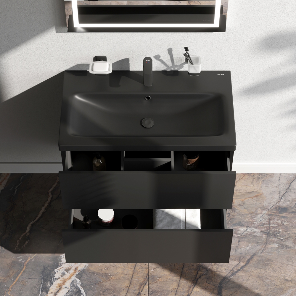 Тумба под раковину AM.PM Gem, подвесная, 75 см, черный матовый M90FHX07522BM