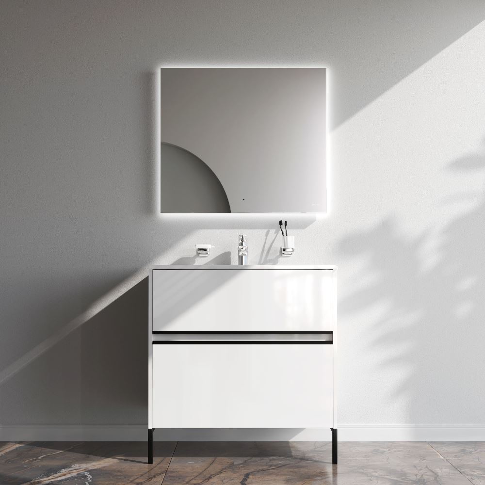 M7BFUX0802WG Sense, База под раковину, универсальная, 80 см, 2 ящика, цвет: белый глянец