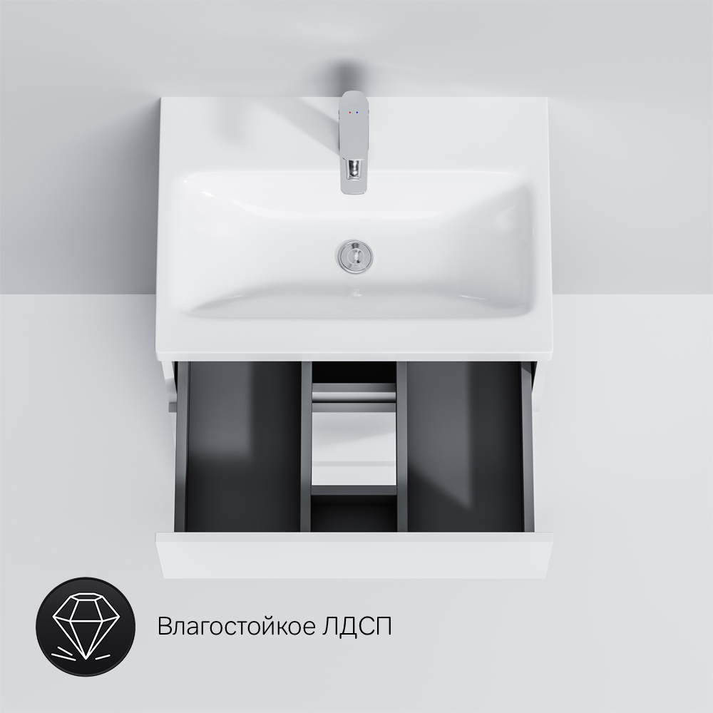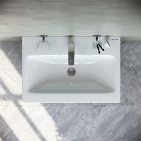 • Массивная керамическая раковина толщиной 5 см с проекцией всего 42 см для самых компактных ванных комнат