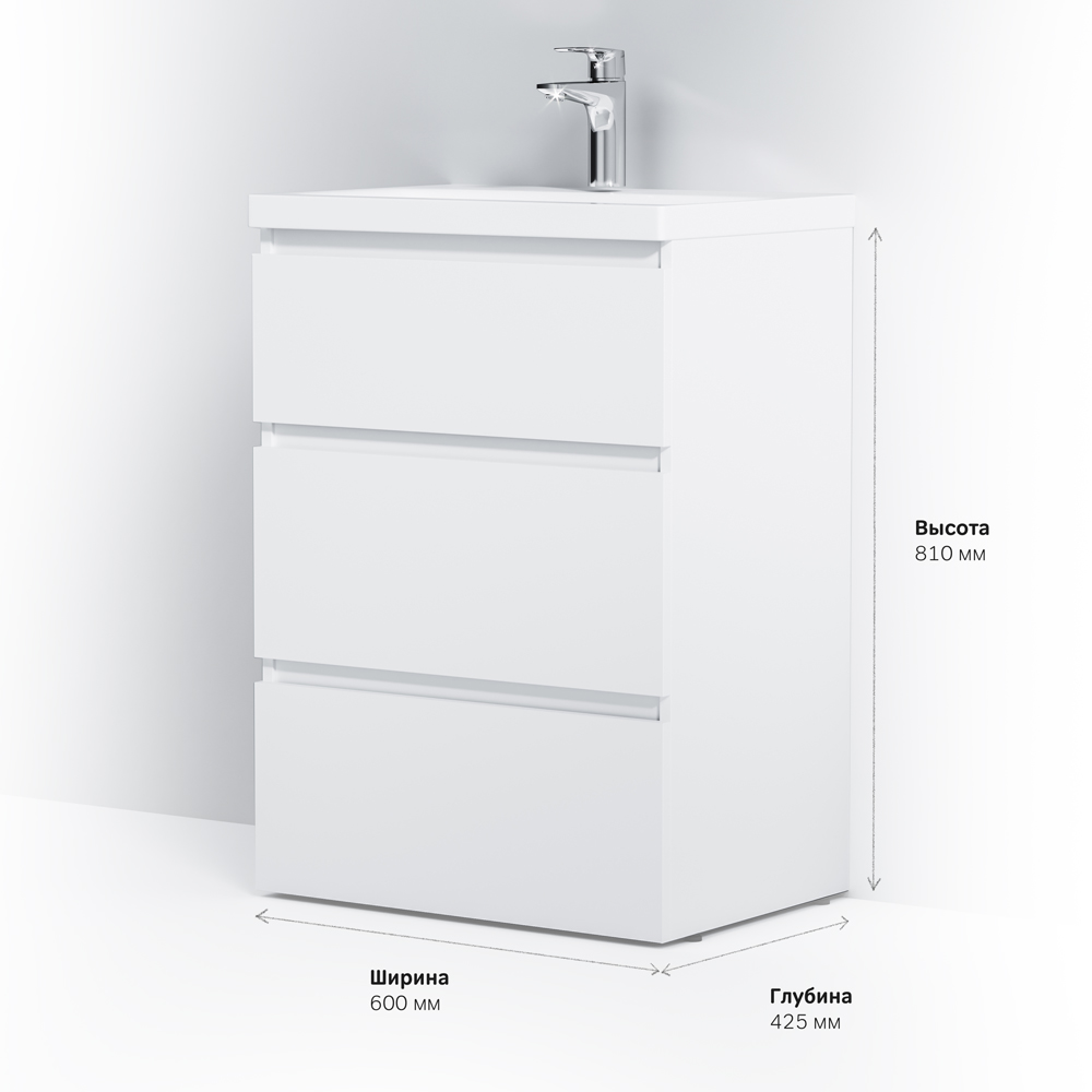 Тумба под умывальник AM.PM Gem S 60 напольная, белый глянец M91FSX0602WG