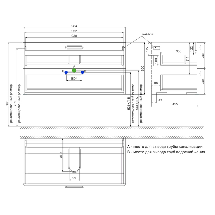 Тумба под умывальник IDDIS Brick 100 BRI10W1i95