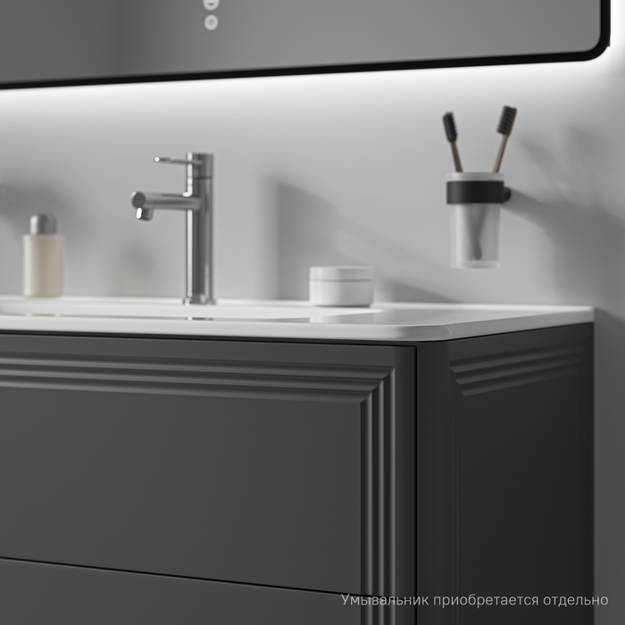 Вместительная подвесная тумба Oxford Neo с выдвижными ящиками в элегантном стиле нео-классика с изящной фрезеровкой на фасадах и торцах. Идеально дополнит современные и классические интерьеры и станет настоящим украшением ванной. При желании тумбу можно сделать напольной – ножки высотой 30 см продаются отдельно в трёх цветах (белый, чёрный и светлый бук). Умывальник приобретается отдельно; подойдёт умывальник IDDIS®, арт. 0108000i28. Материал фасадов и боковин – МДФ с покрытием тёмно-серой матовой эмалью (RAL7015). Продумано для использования в помещениях с высокой влажностью и сохранит первоначальный вид мебели надолго (при должном уходе). Два ящика с шариковыми направляющими скрытого монтажа Hettich. Фурнитура рассчитана на 30 000 открываний – это более 10 лет исправной работы. Современный механизм открытия Push-to-Open – ящики открываются нажатием на фасад. В комплекте регулируемые навесы Hettich для удобного монтажа тумбы. Сифон приобретается отдельно. Гарантия на мебель IDDIS® – 3 года. (с) Авторский текст, август 2025 г.