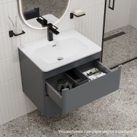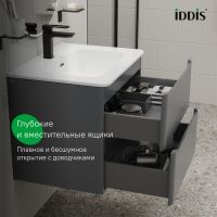 Компактная подвесная тумба Edifice стильного темно-серого цвета (умывальник приобретается отдельно) – воплощение современного минимализма. Мягкие линии корпуса в сочетании с удобными интегрированными ручками выглядят свежо и актуально. Смотрится аккуратно, легко и не усложняет процесс уборки в ванной благодаря подвесной конструкции. Рекомендуется использовать только с оригинальной моделью умывальника IDDIS® (арт. 0106000i28). • Надежные крепления рассчитаны на большой вес и позволяют равномерно распределять нагрузку. • Два выдвижных ящика закрываются плавно и бесшумно благодаря высококачественным скрытым направляющим с доводчиками немецкого производства. • Пластиковый ограничитель под сифон в верхнем ящике позволяет максимально эффективно использовать его пространство. • Фурнитура рассчитана на 30 000 открываний, что составляет более 10 лет исправной работы. Гарантия на мебель IDDIS® – 3 года. (с) Авторский текст, август 2023 г.
